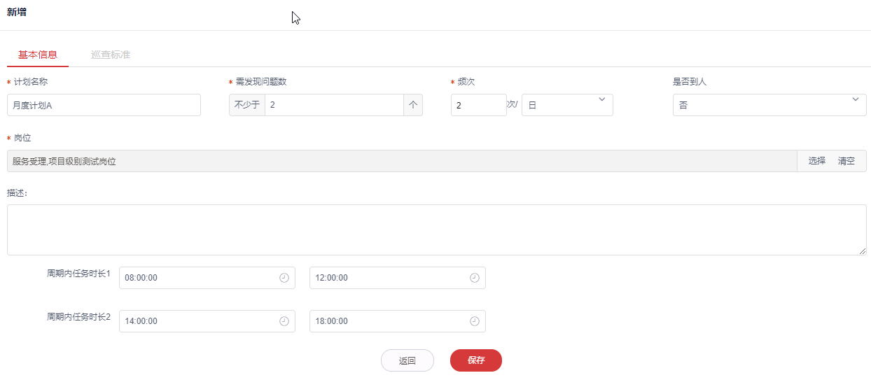 定义了品质巡查标准后,您可以制定基于巡查标准的巡查方案。