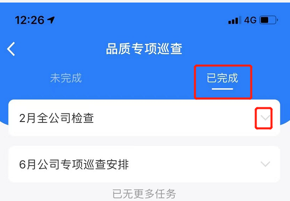 1.点击已完成,在任务详情中,点击已发现问题。