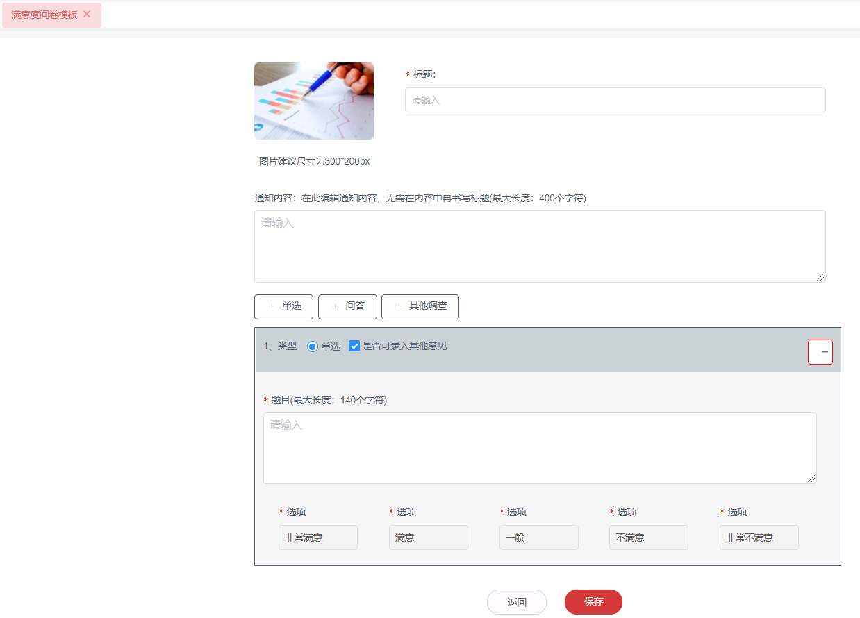 配置满意度调查模板,供后续快速定制满意度调查问卷。