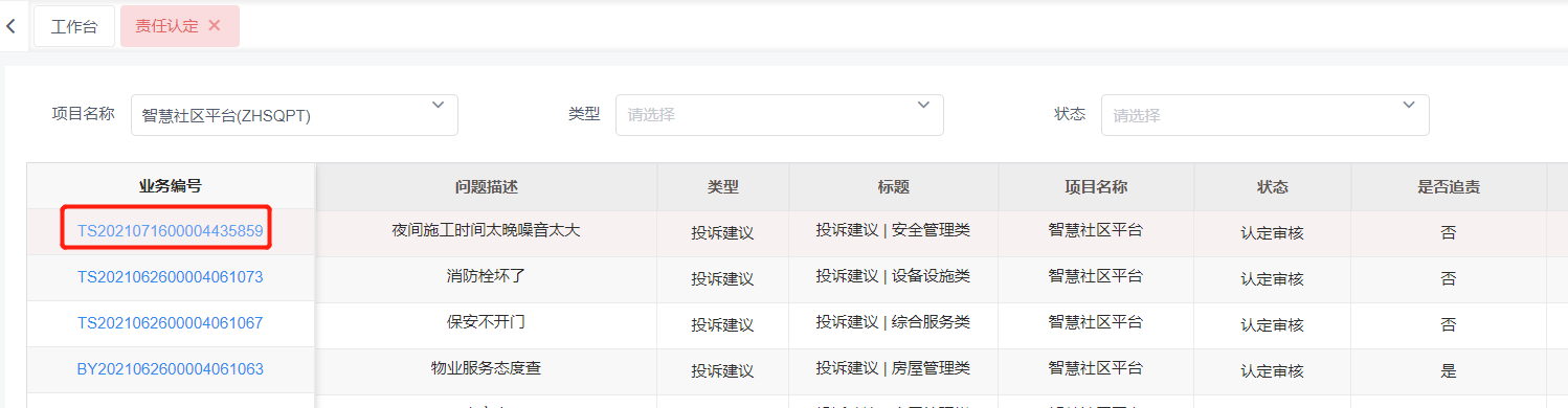2. 点击需要认定的服务编号链接,进入认定详情界面。