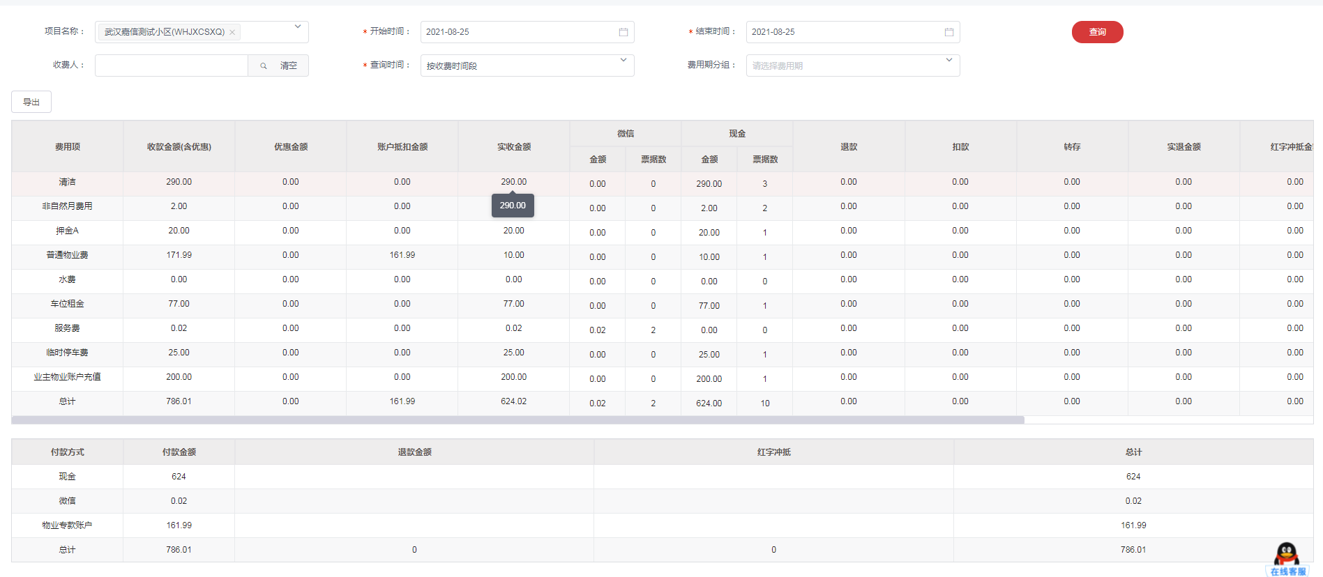 统计指定时间段内,指定项目的收费情况。所以是根据收费的时间来统计的,而不是费用的时间。