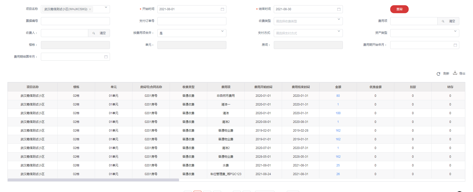 1. 选择**物业管理-->费用报表-->凭据统计-->费用明细**