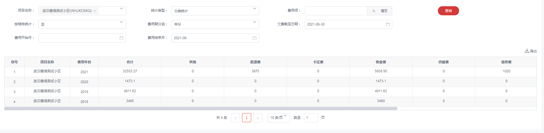 统计时间:年份、月份。根据统计时间选择的不同,列分别展示为费用年费或费用月份。