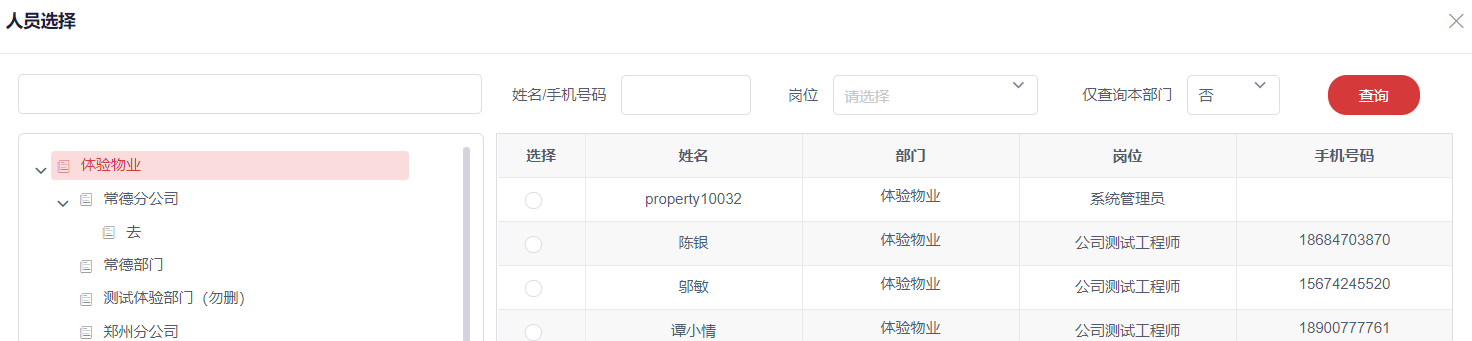 **b. 有人事业务查看所有权限令牌的人员:归属公司的人员可查看所有的人离职申请;归属分公司的人员只可查看所属分公司及其下属项目、部门的离职申请;归属项目的人员只可查看所属项目及其下属部门的离职申请;归属部门的人员与所属部门上级查看权限一致**