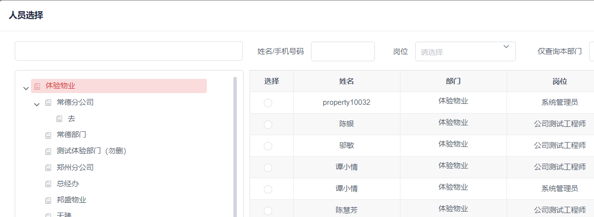 **b. 有人事业务查看所有权限令牌的人员:归属公司的人员可查看所有的请假申请;归属分公司的人员只可查看所属分公司及其下属项目、部门的请假申请;归属项目的人员只可查看所属项目及其下属部门的请假申请;归属部门的人员与所属部门上级查看权限一致**