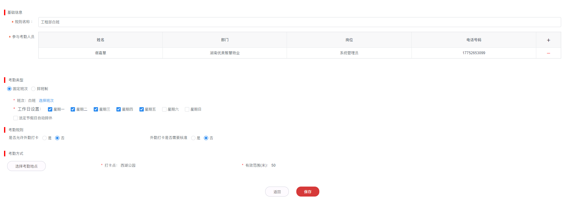4.选择排班信息后返回到排班设置页面点击**保存**按钮。