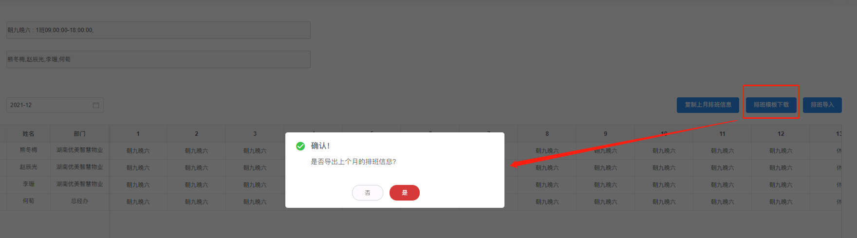 **选择是会按上月的排班导出模板,选择否则按本月的排班导出模板**