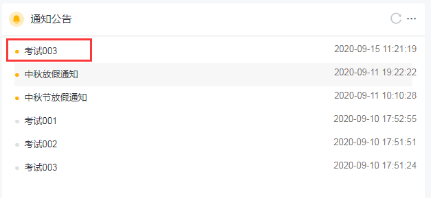 3.上线成功,发布范围内的人员可在**工作台 > 通知公告**查看到该在线考试信息