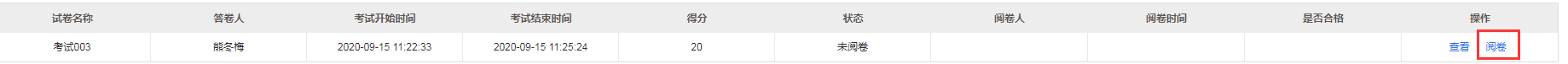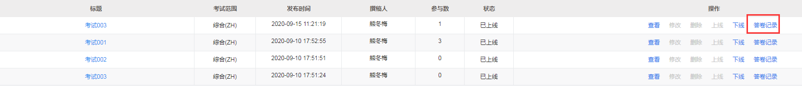 2.于列表需要阅卷的在线考试信息记录操作列的**答卷记录**按钮