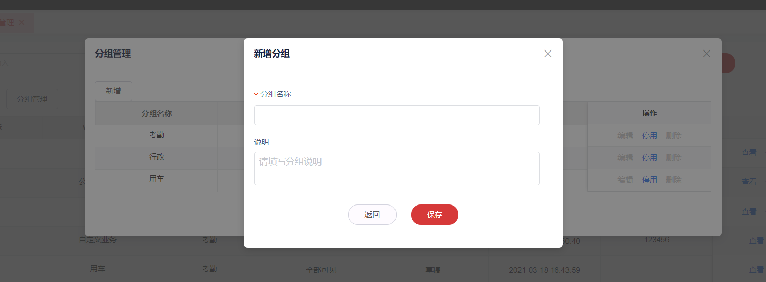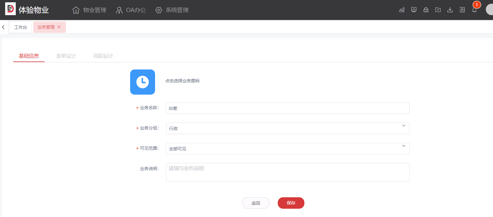 2.点击新增业务表单,填写基础信息点击保存后可对表单和流程进行设计