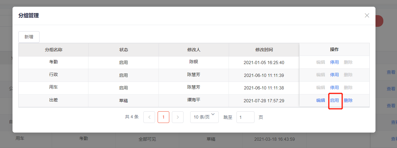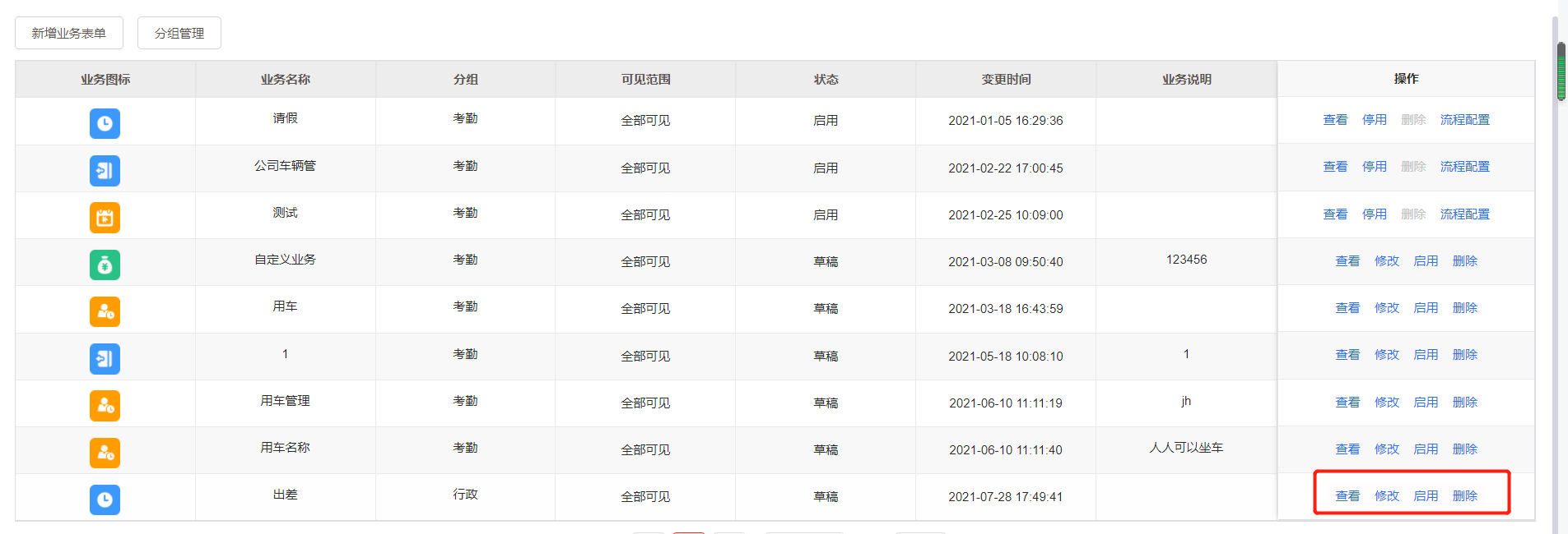 6.返回总列表里可进行相应的查看、修改、启用、删除