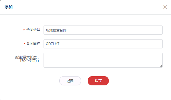 4.添加类型成功,于列表可查看到该类型,并可于合同管理添加该类型的合同。