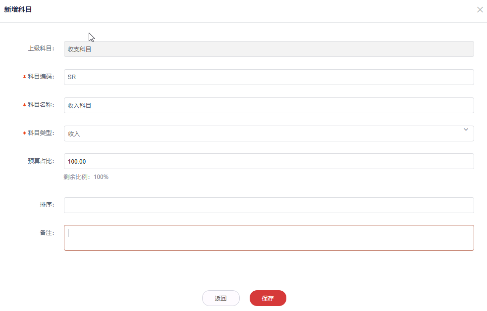 1. 选择 **OA办公 > 预算管理 > 预算管理 > 收支科目** 。
