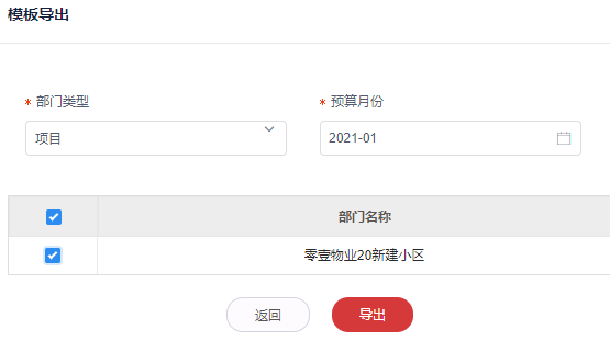 4. 点击**导入**,选择部门类型,预算月份后,上传文件,点击保存。