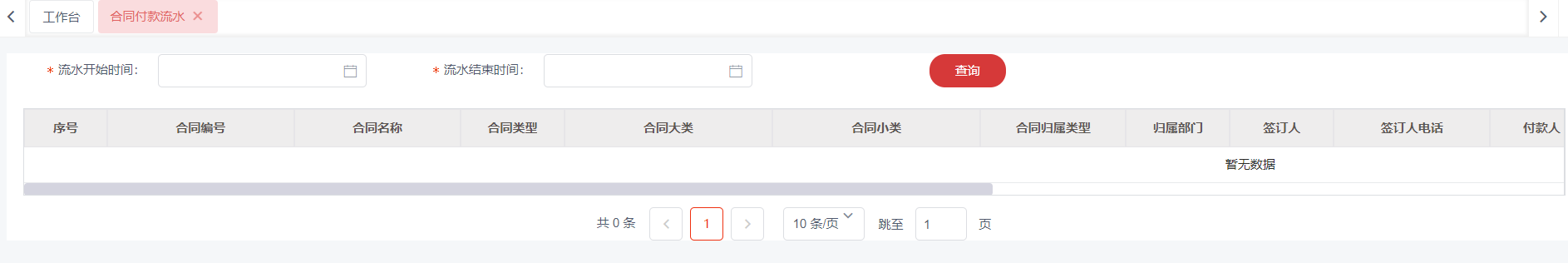 1. 选择**OA办公>业务报表>合同管理>合同付款流水** 。