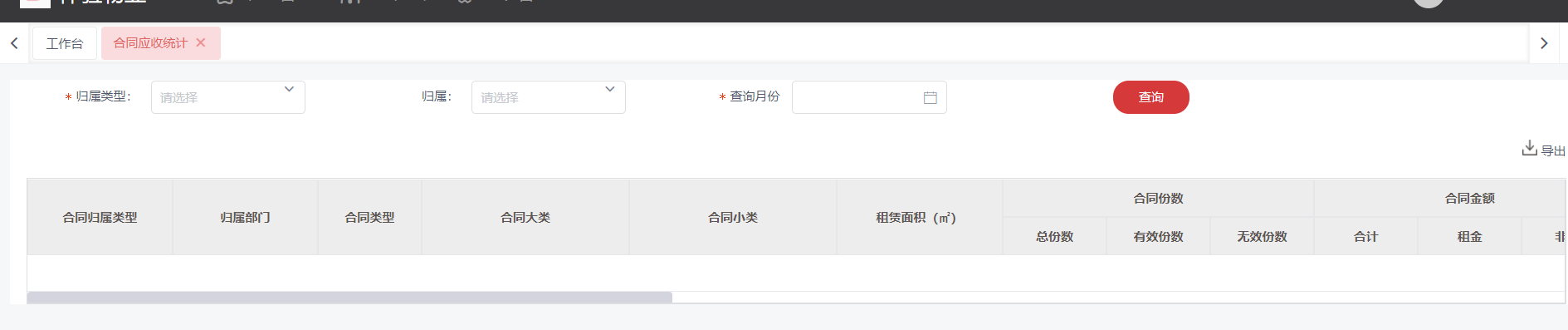 2. 查询合同份数、合同应收、实收、欠费信息。