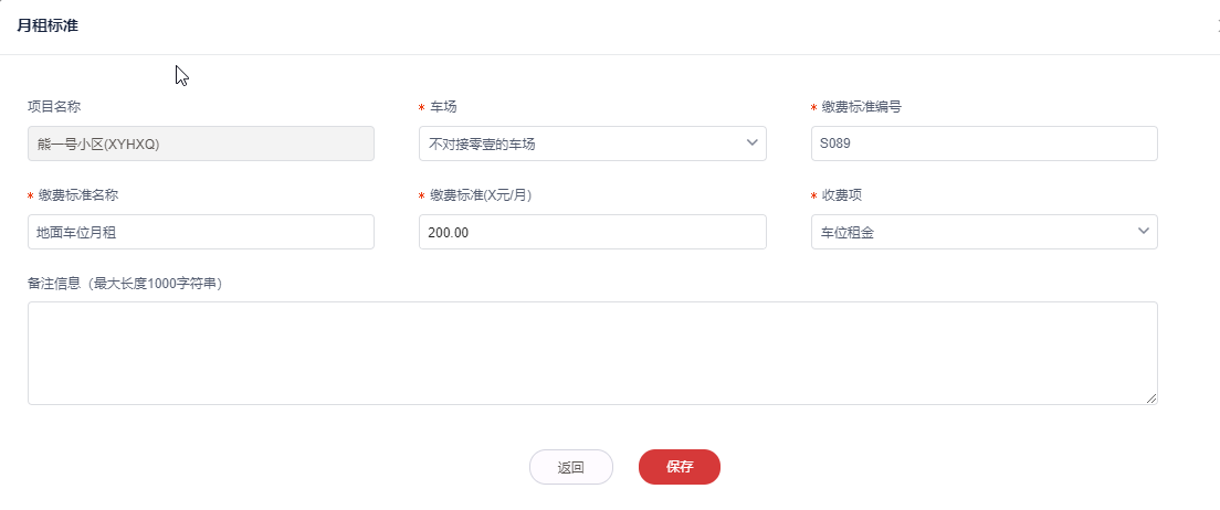 3、填写月租标准的基本信息,点击**保存**。