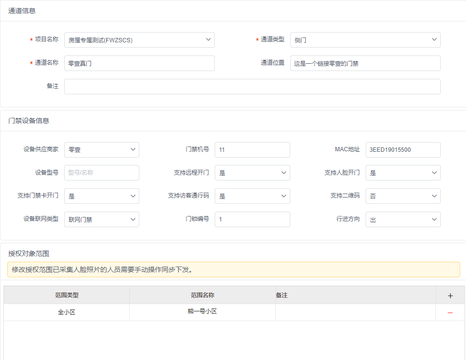 * 全小区: 全小区的业主和物业人员都可以被授权。
