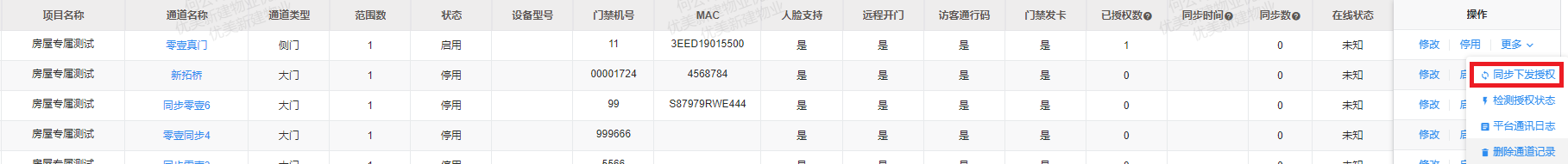 1、如通道对应的设备进行了更换,您可以修改通道对应的设备的MAC地址后,点击**同步下发授权**,把符合此通道授权范围的人脸批量下发到此设备。