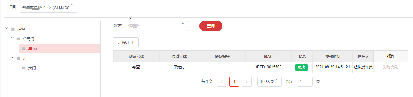 如门禁设备支持远程开门,物业员工可以远程开门。