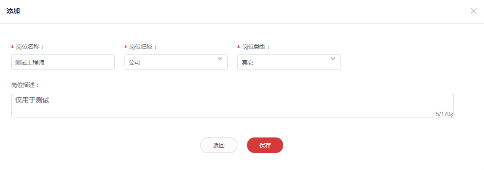 3.填写岗位名称,选择岗位归属、岗位类型后,点击**保存**按钮