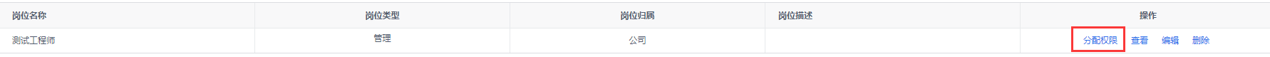 3.在岗位列表中点击需要分配权限岗位后操作列的**分配权限**