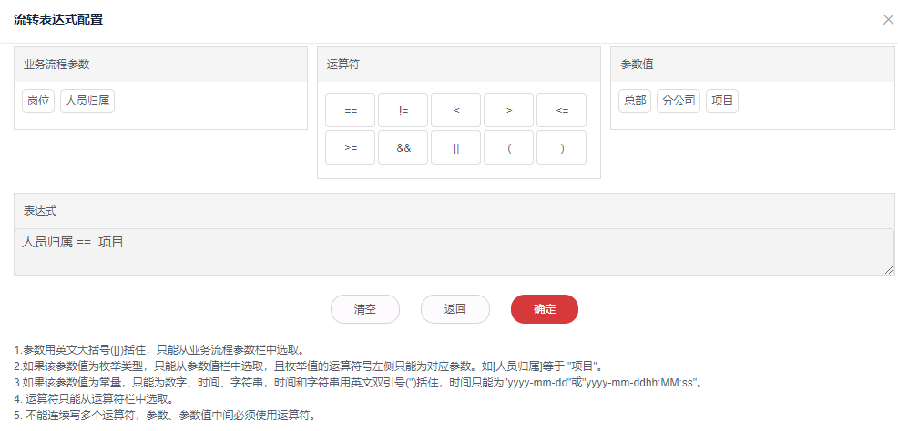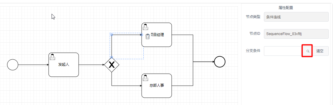 a) 点击分支节点后的条件连线,在右侧的属性配置区域,点击进入流转表达式配置界面。