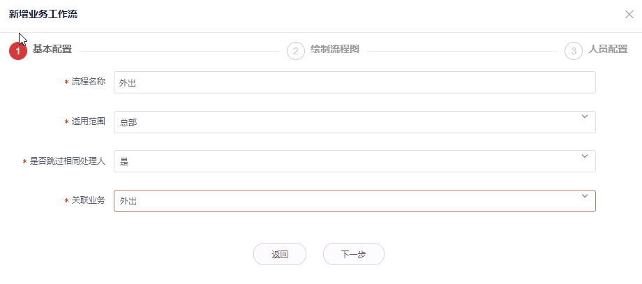 是否跳过相同处理人:是,表示当一个流程中,不同的步骤由同一个处理人审批时,该处理人在第一个节点审批后,后面节点自动跳过;否,则不跳过。