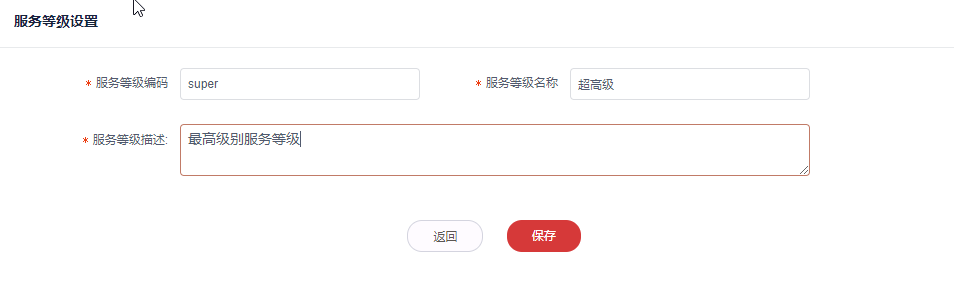 2. 录入服务等级信息,点击**保存**。