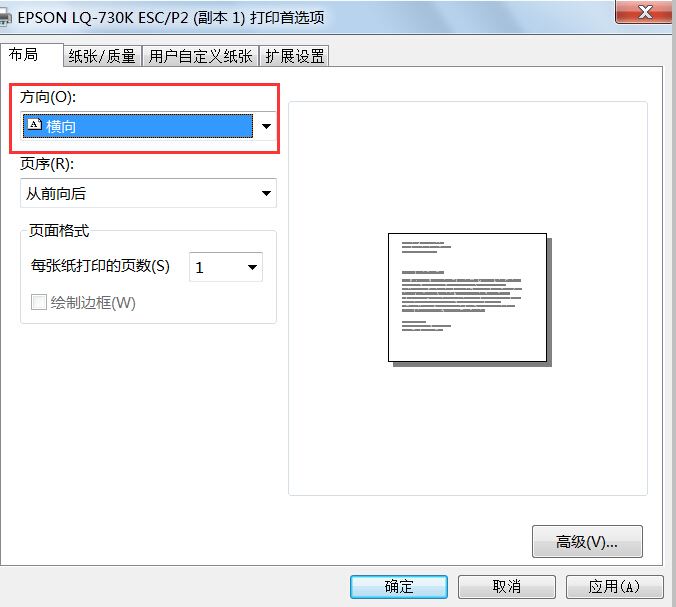 7. 设置“布局”为横向