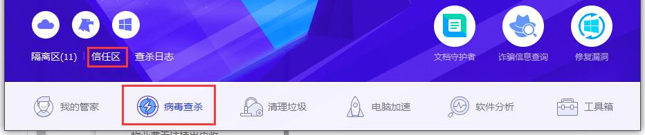 *电脑管家:打开首页--》打开病毒查杀界面--》点击病毒查杀界面左下角的《信任区》选项--》添加文件--》选择路径C:\Program Files (x86)\MountTaiSoftware\CLodop32--》添加两个打印控件文件--》重启打印控件即可正常使用