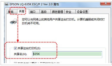 使用的打印机型号为EPSON 630或730,WIN7操作系统,项目上多台电脑如何连接同一个台针式打印机?