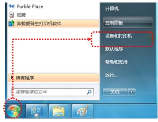 1.1 点击“开始”→“设备和打印机”。