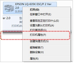 1.2 右键点击打印机图标选择“打印机属性”。