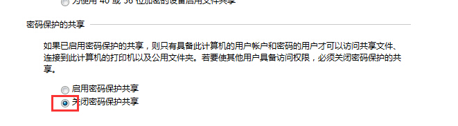 1.6 在网络与共享中心将密码保护的共享关闭,最后保存修改(此处修改是让共享打印机的电脑无需输入主机端电脑的密码就可以打印)