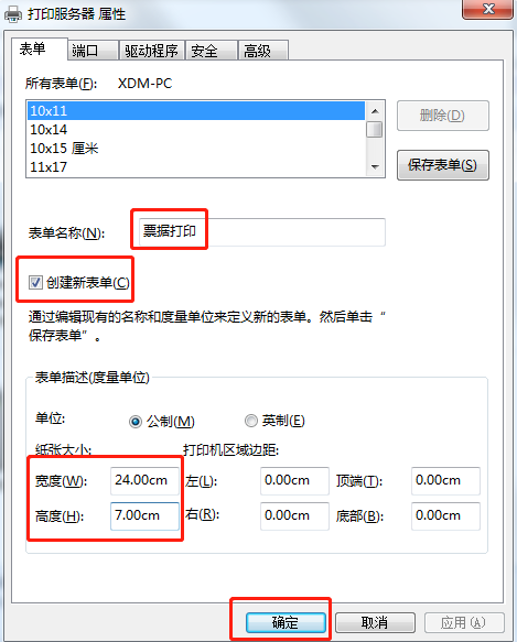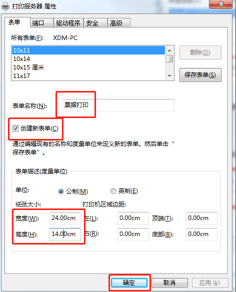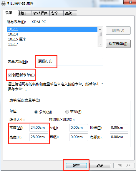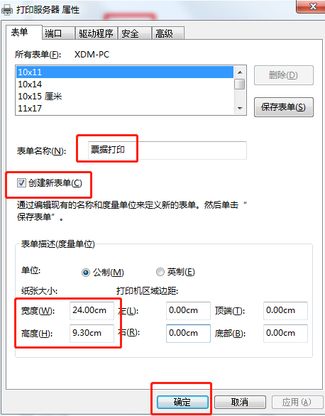 3. 勾选**创建新表单**,设置表单名字和纸张大小后,单击确定。