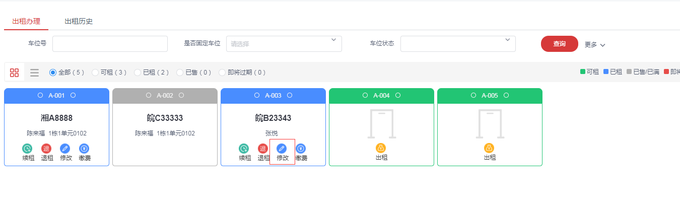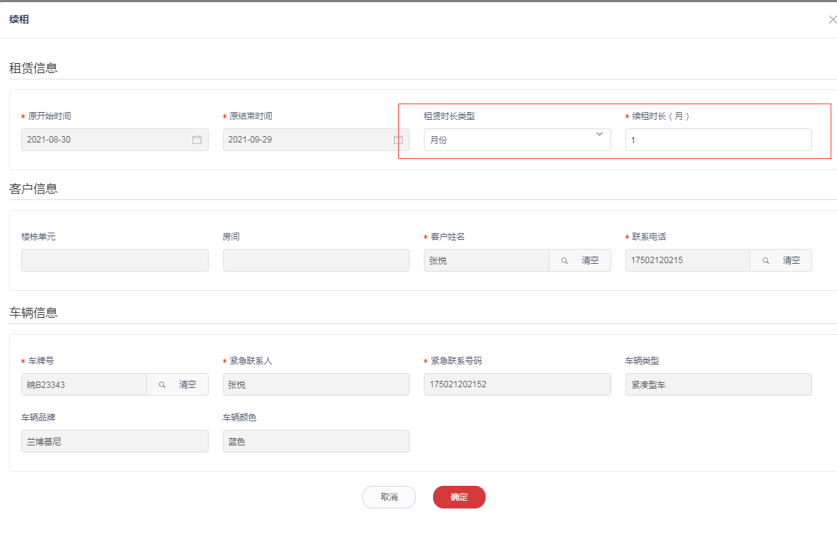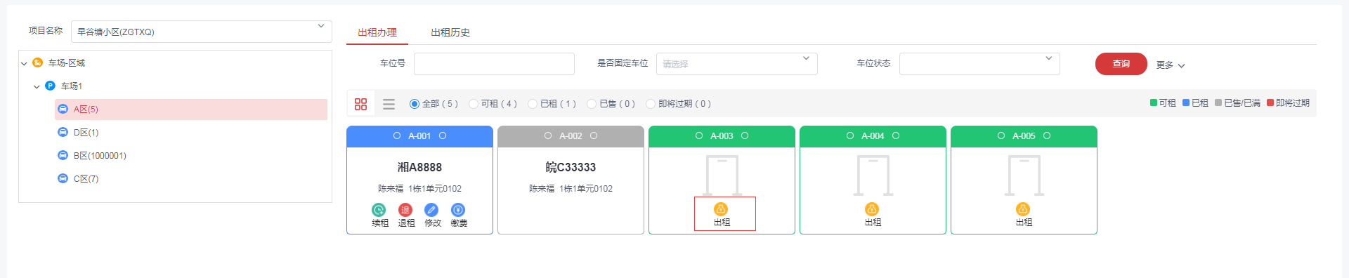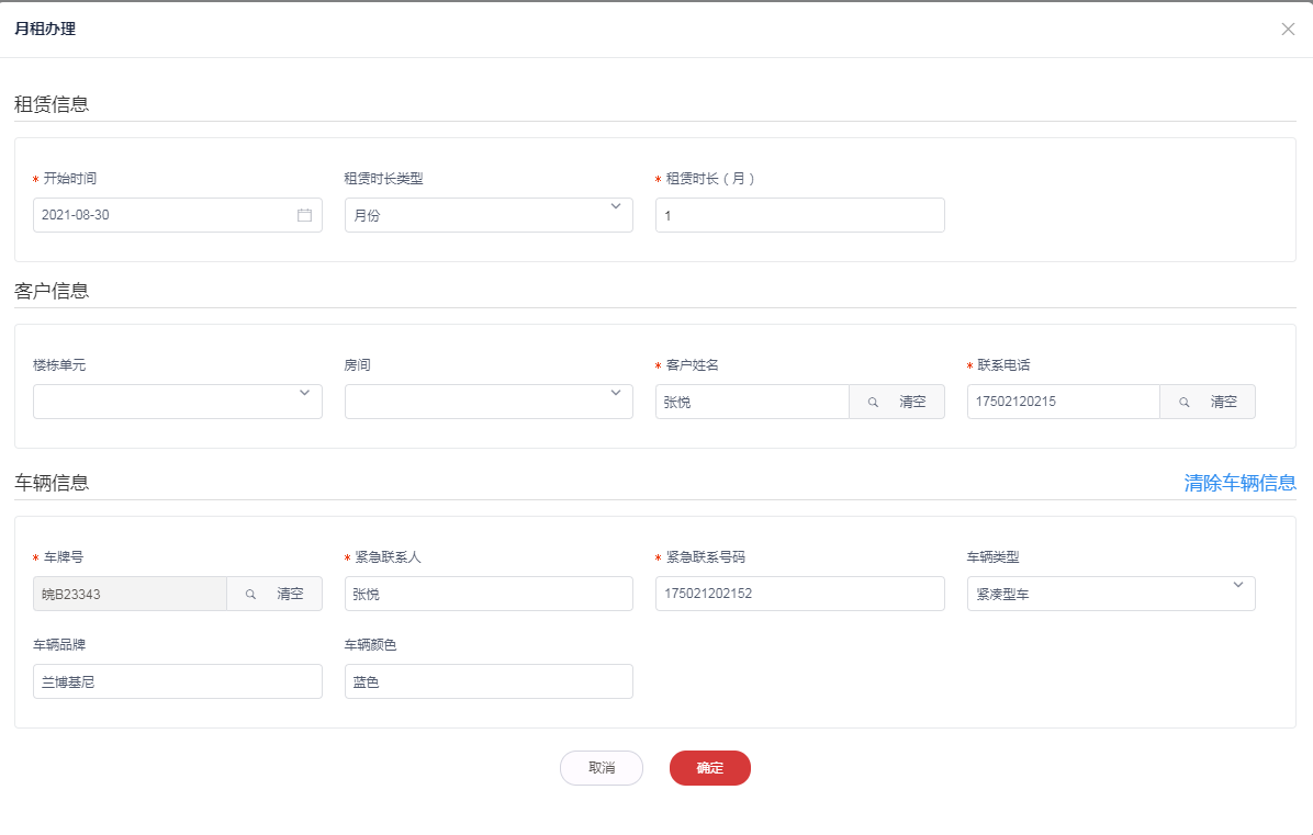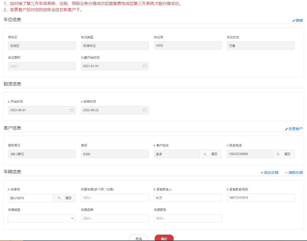 对接零壹的车场,车位既可以办理产权登记,也可以办理月租业务。当办理月租业务时,车辆信息必填。