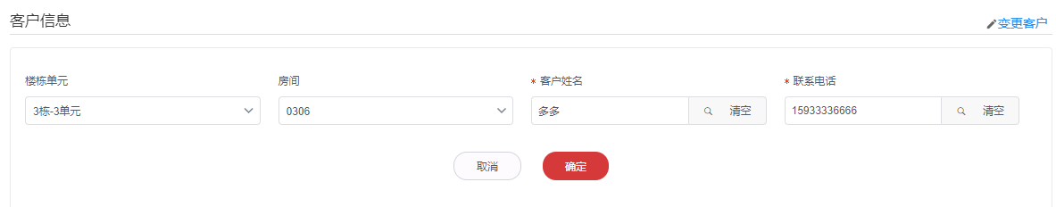 2、(可选)如您想修改客户信息,点击变更客户。修改后,点击保存。