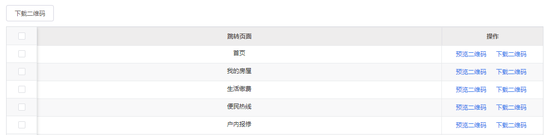 3. 如您想批量下载某些菜单的二维码,请勾选所需数据,点击左上角的下载二维码按钮。