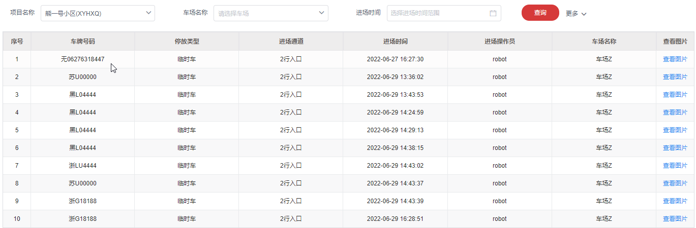 - 车辆入场明细