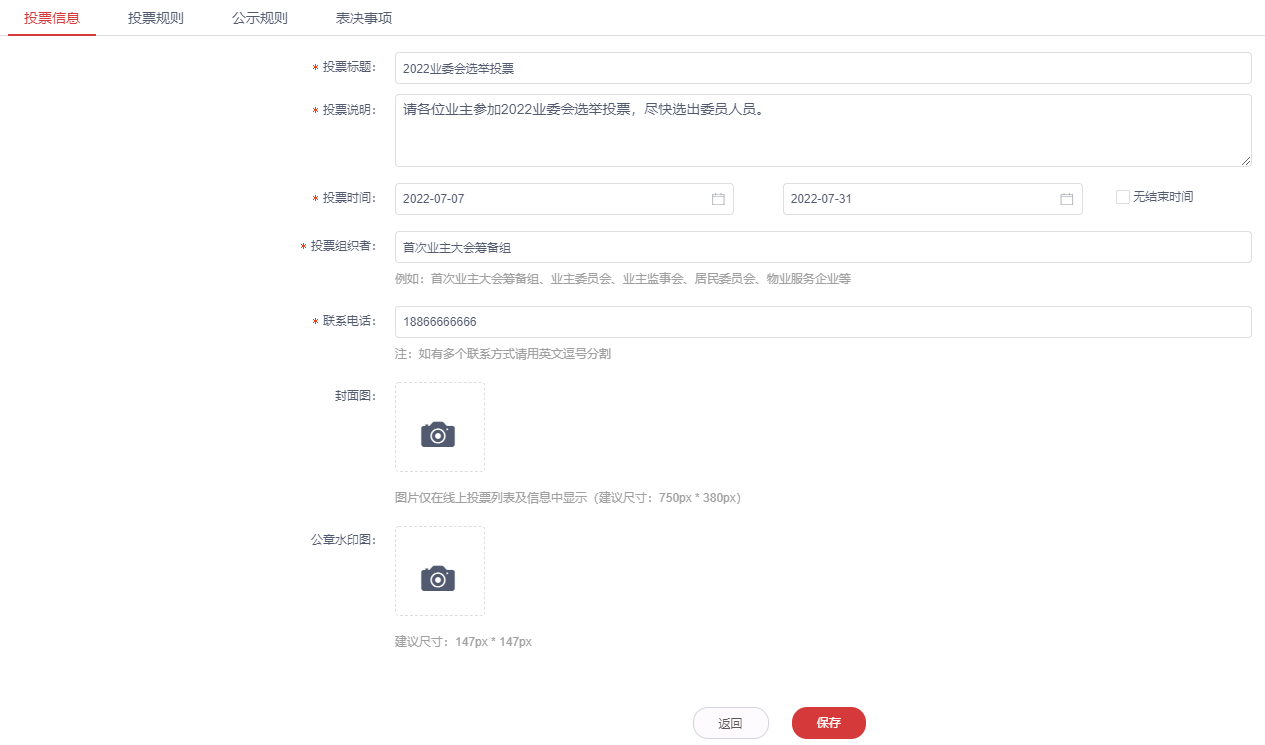 物业人员可以面向符合特定条件的业主发起投票表决,并查看投票情况。