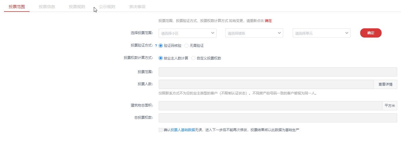 1)设置投票验证方式:用于配置业主投票时,是否需要校验提前发送给他的验证码。