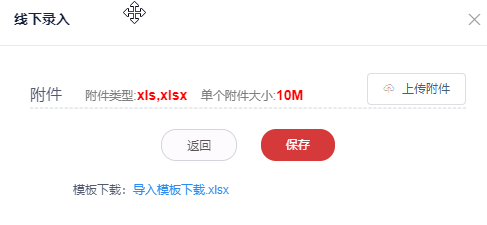 3. 点击**导入模板下载**,在文档中填写数据后,保存上传。