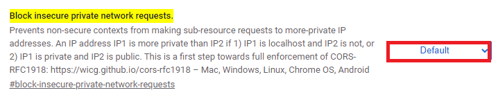 3. 看到底色泛黄的“Block insecure...”项的 Default 值,改选成 Disabled