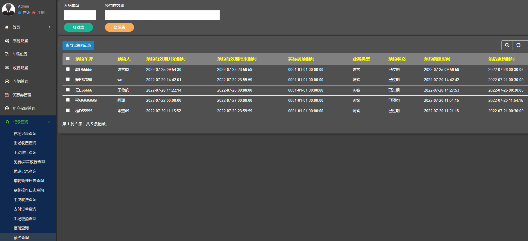 - 车辆入场明细