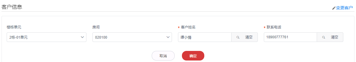 2、(可选)如您想修改客户信息,点击变更客户。修改后,点击**确定**。