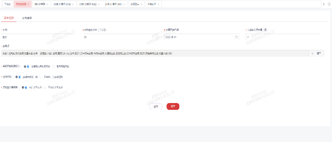2.配置规则参数并应用到对应项目下费用