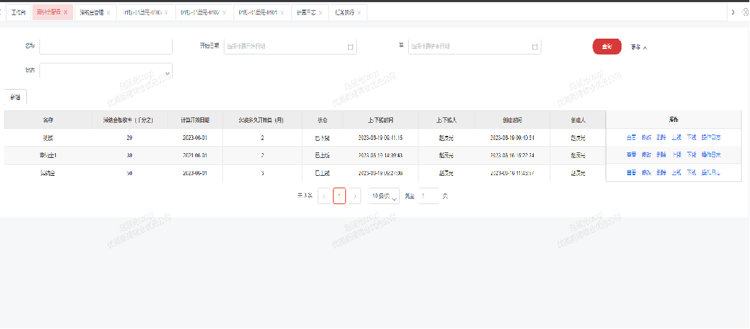 2.新增、修改、删除以及上下线滞纳金配置,展示配置操作日志。
