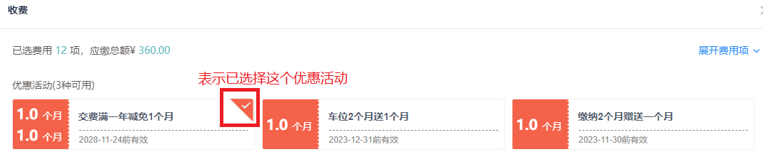 系统也支持配置优惠活动,提高业主缴费率。