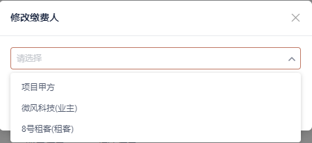 - 修改房产缴费人为“项目甲方”